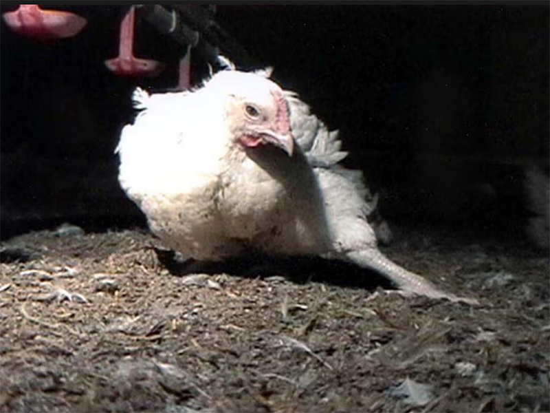 Piščanci broiler, ki so vzrejeni zaradi njihovega mesa, pogosto trpijo za ohromelostjo zaradi prenatrpanosti v vzrejališčih. Fotografija: PA.